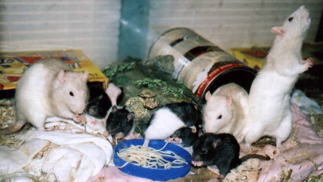 And, surely you knew it could only be a matter of time until the babies began their own experiences with showing off rat finery. Here's Bree borrowing Molly's hat for a little dress up fun...