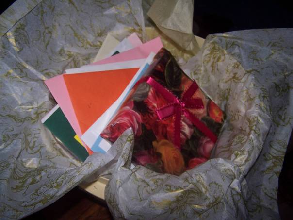 ...the main gift (note the FedEx labels on those boxes -- the story signified by which appears in the August issue of "Mil Mania"...and which I've now added to the Random Rants section of this site)... ...there was still some type of suitable item needed to contain all the cards and gifts sent by participants as the second part of each's submission. And, although it may not be particularly fancy, here's what I came up with to serve the purpose...
